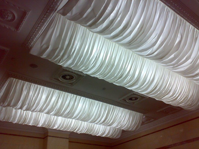 Оформление летнего шатра из негорючей органзы. Пиццерия La Strada, Сочи